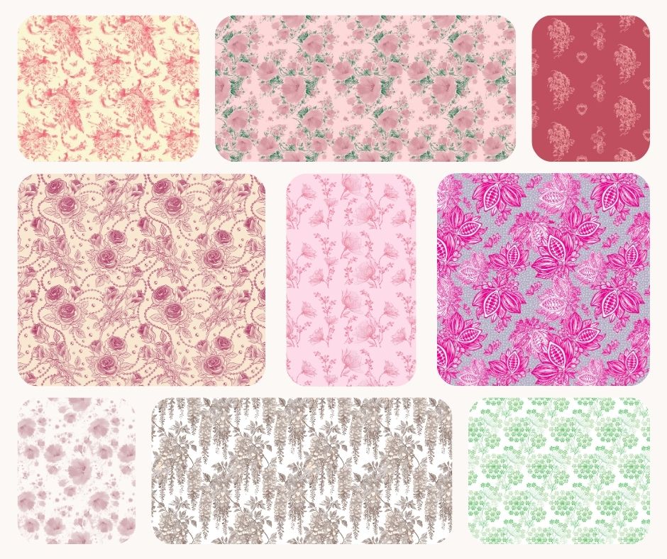 This project was carried out in a professional and paid context, within my alternating company, Polypap, a packaging printing industry for florists. It consisted of creating temporary collections of floral patterns for Valentine's Day and Mother's Day, aiming to bring novelty and a collectible effect in line with the bouquet trend. The company primarily targets florists, with a clientele mainly in France but also internationally (Canada, Greece, Italy, Japan).